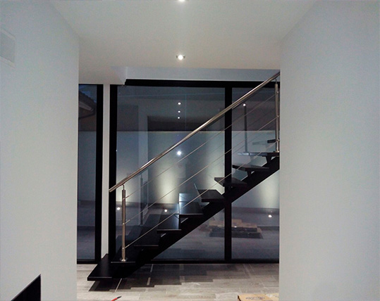 Podemos hacer barandillas de hierro forjado, de acero inoxidable y de cable de acero inoxidable, de vidrio y acero, o de vidrio simplemente.